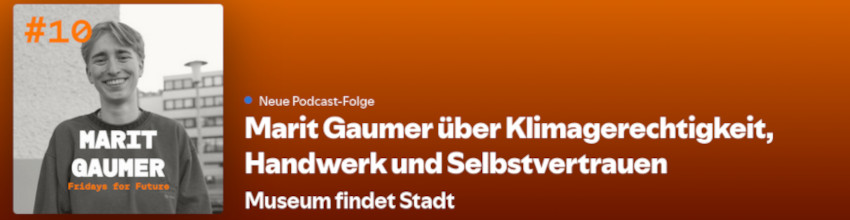 In den vergangenen Jahren hat Fridays for Future viel und viele bewegt – natürlich auch in Oldenburg. In der aktuellen Folge des Podcasts “Museum findet Stadt” des Stadtmuseums Oldenburg ist Marit Gaumer zu Gast, die aktiver Teil im Organisationsteam dieser Initiative ist. Gleichzeitig ist sie mehrere Monate mit dem Fahrrad quer durch Europa gereist und hat sich nach ihrer Rückkehr dazu entschieden, eine Ausbildung zur Tischlerin zu beginnen. Jede Menge spannender Geschichten also! Weiterlesen