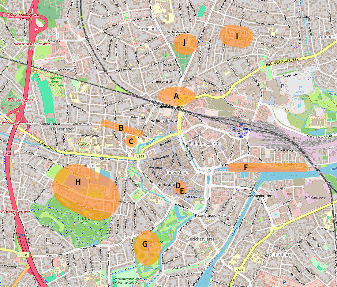 Seit Herbst 2013 läuft dieses Experiment jetzt ganz konkret in Oldenburg. An acht Stellen in der Stadt können mittlerweile Hörspiel-Episoden gehört werden, die ihre Geschichten mit dem Ort erzählen: entlang der Katharinenstraße, am und im Alten Rathaus, am Marktplatz, am und im Kulturzentrum PFL, auf dem Pferdemarkt, am Hafen, im Schlossgarten sowie im Dobbenviertel.